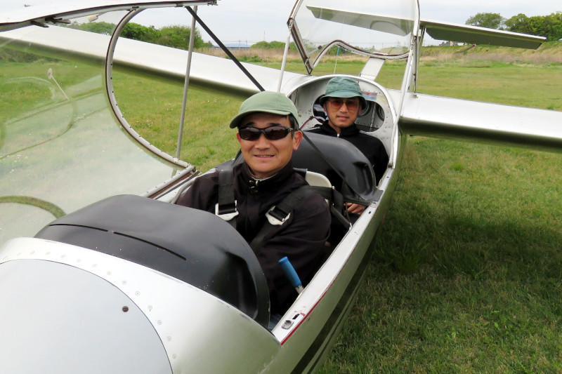 そして今日は嬉しいニュースがひとつ。豊田市にお住まいの加藤さんがクラブに入会。学生時代航空部所属で、既にライセンスはお持ち。前谷さん操縦のブラニクで岡崎のグライダー空域を慣熟した後、稼教官同乗で初フライト。乗るのも実物を見るのも初めてというブラニクの操縦はとても楽しかったそうです。これからどうぞ宜しくお願いしますっ!!