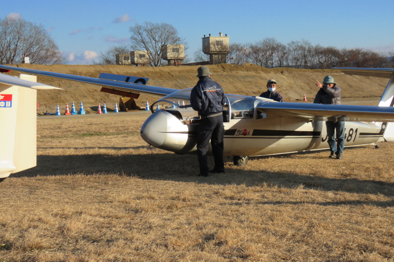 松の内も明けた翌日、日常を取り戻すべく(?)集まったクラブ員。新年連続フライトに引き続きグライダーでのフライトスタートです。