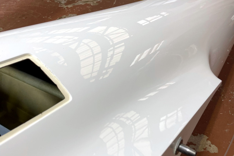 またその隣ではリペイントと補修から戻ってきた単座練習機、ASK23が飛行復帰目指して整備。半年以上前に岡山県の業者さんに送り出す前は黄ばんでヒビ割れていた表面も真っ白でピッカピカ。竹内さん畑野さんの両整備士が計器が正常に動くかを入念にチェックしていました。