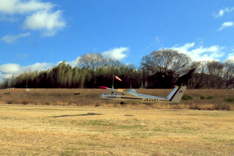 良い天気で綺麗な冬の青空ですが、吹き付ける風がやや強め。終日飛ぶのは難しいかもと様子を見つつ、横風離着陸の訓練と気合を入れてフライトです。