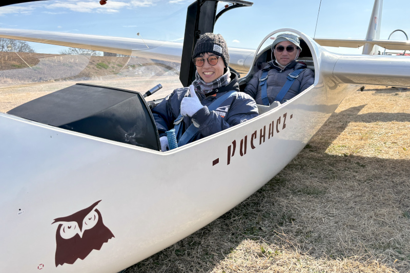 若手の林君はプハッチに初搭乗。乗る前には魚住教官から機体特性をしっかり聞いて、上空でも失速訓練をしてプハッチのクセを覚えます。安全に楽しむ姿勢は見習いたいです。
