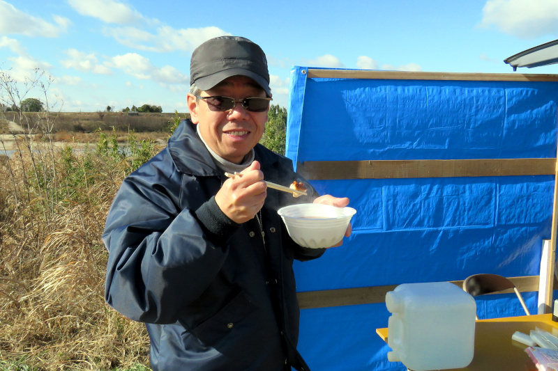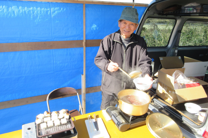 発航点脇のピストでは、お正月恒例、神戸さんの甘未処がオープン。あつあつのお汁粉が北風に冷え切った身体に染みわたります。香ばしく焼けたお餅と甘いお汁粉で一気に生き返りますね。神戸さん、ご馳走様でした。